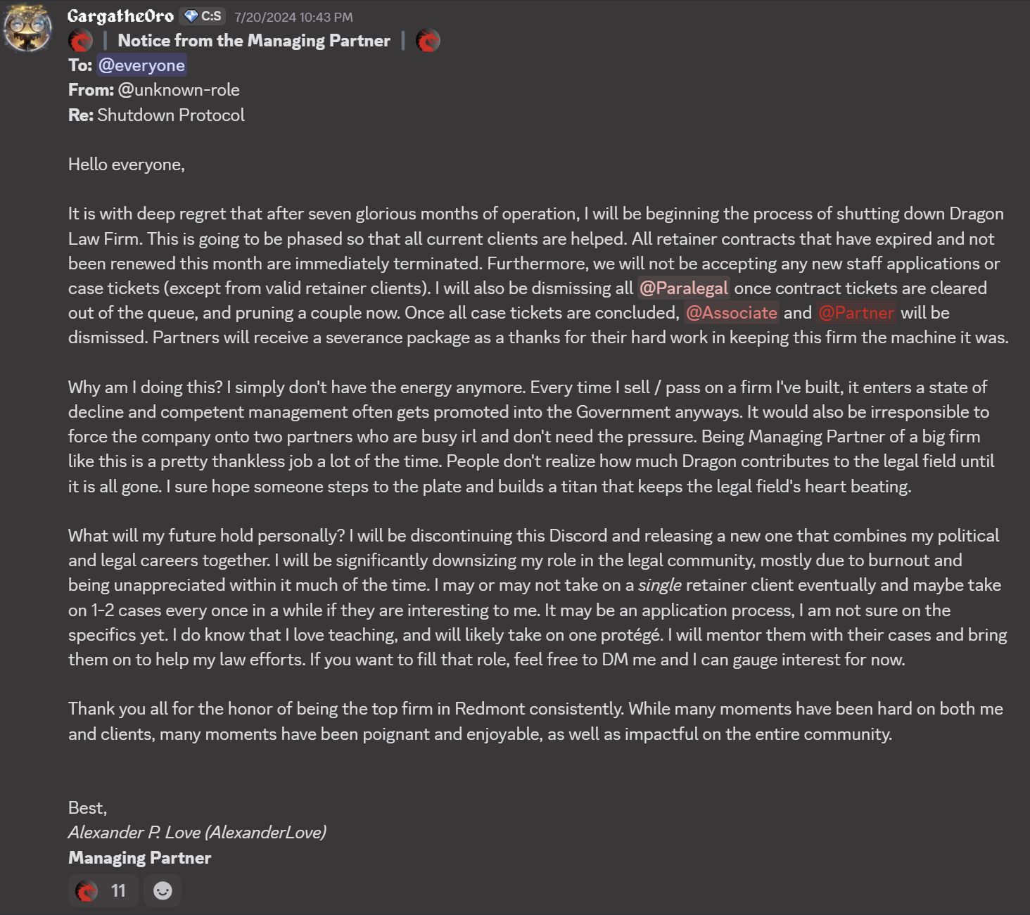 Dragon Law Firm announces it's shut down on June 20, 2025.