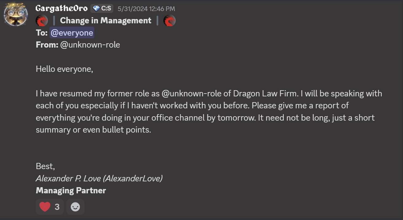 Alexander love retakes ownership of Dragon Law Firm on May 31st, 2024