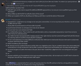 Plura72 was then asked questions about where he got the idea of appropriating an extra 50k dollars to the DCT on which he quoted an NDA